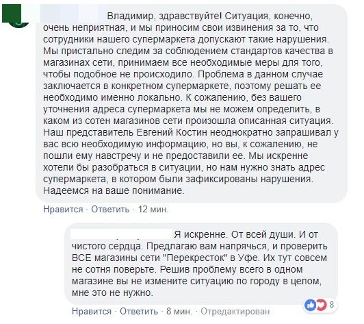 По итогу, автор поста написал заявление в Роспотреб, а представители магазина просто перестали отвечать на сообщения.