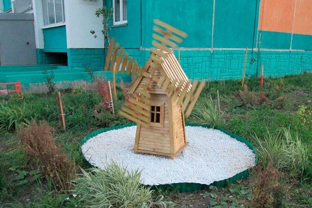 Из реек Дмитрий смастерил мельницу. Поставил ее на газоне и назвал его поэтично «Феникс» — в честь возрождения.