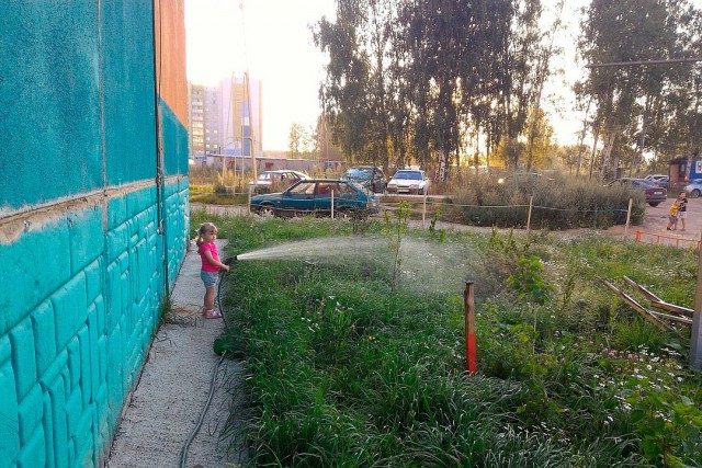 — Каждый вечер ходим с семьей гулять во двор. Перед этим в жаркую погоду обязательный ритуал: 10-15 минут поливаем газон. Моим детям 5 и 3,5 года, но они стремятся помогать, им нравится выкапывать ямы, сажать цветочки, потом их поливать и видеть, как они распускаются и цветут. Думаю и другие дети, видя это, уже не станут крушить мельницу и портить газон.