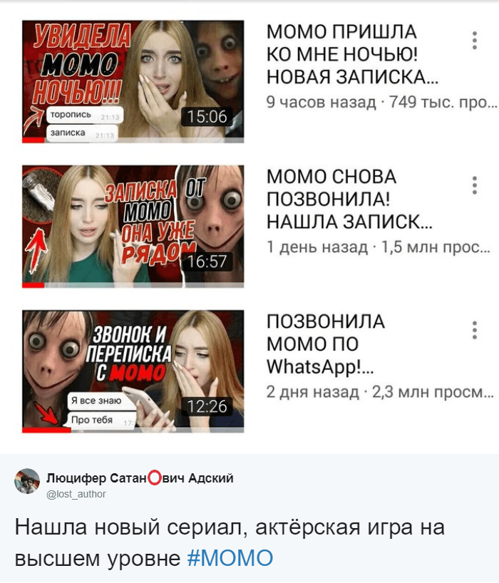 Ютуберы пытаются хайповать на теме, снимая видео с шокирующими ответами Момо