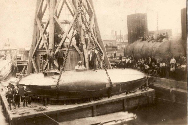 Подводная лодка «Миротворец» во время испытаний в гавани Нью-Йорка, 1885 год.