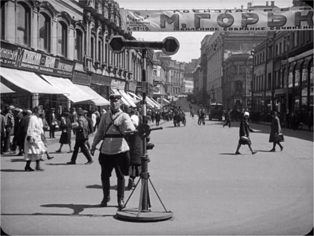 Регулировщик с семафором на улице Кузнецкий мост, 1929 год, Москва