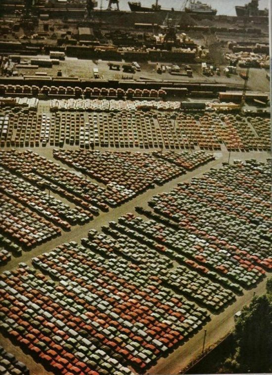 Экспортные автомобили ждут погрузки в порту, 1983 год, Рига