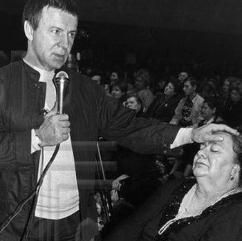 Кашпировский проводит «лечебный» сеанс с Галиной Брежневой, 1990–е годы, Москва