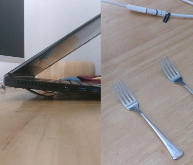 Не знаете, как охладить свой ноутбук? Опробуйте для этой цели две обычные вилки.