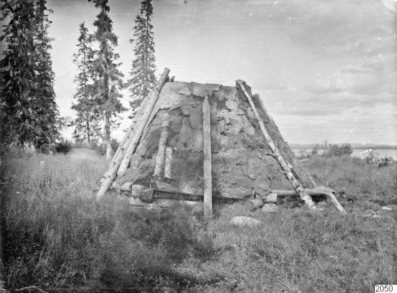 Это, по-видимому, всё та же кухня-юрта, а на заднем плане — жилой дом-сруб. В доме, скорее всего, огонь был только в печи, тогда как в уличной кухне готовили на открытом огне.
