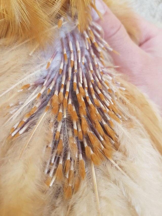 Что это за кошмар, спросите вы. Так выглядят растущие заново пёрышки курицы после линьки
