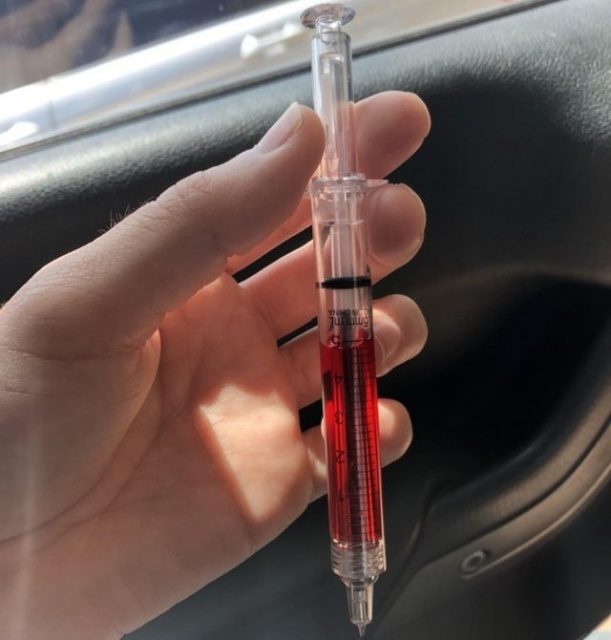 «Ручка-шприц, которую я получил в больнице».