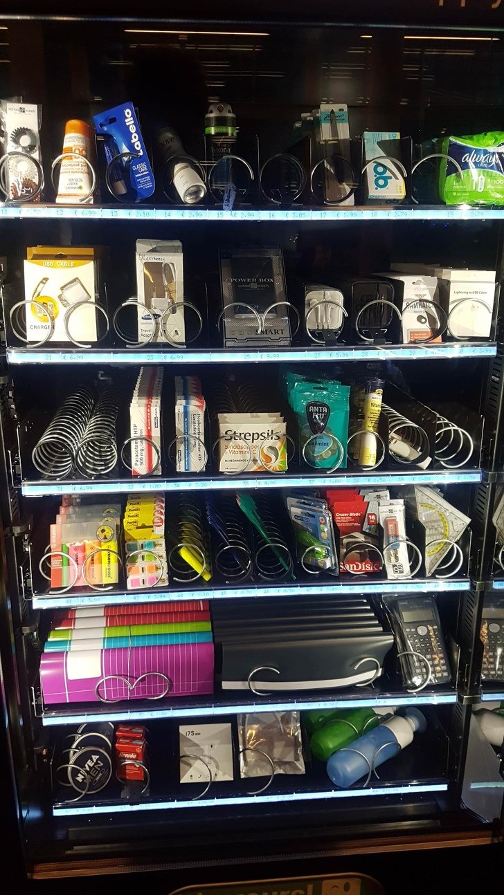 У нас в университете стоит автомат со всем, что может понадобиться студенту: от леденцов от боли в горле до внешних аккумуляторов