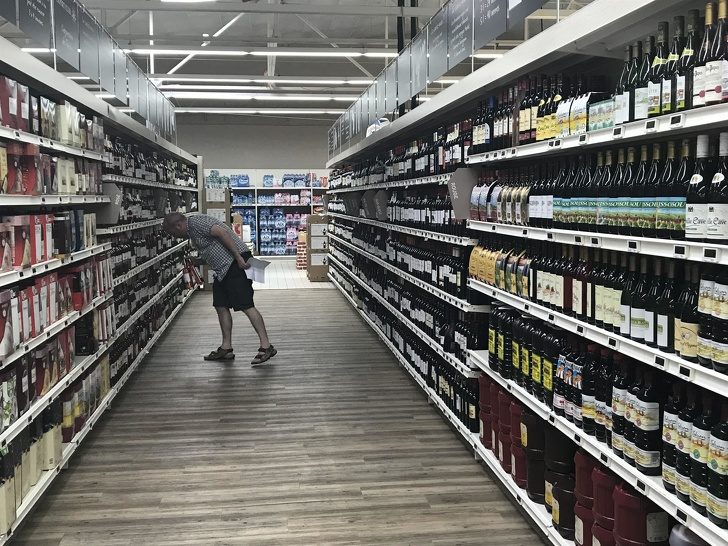 Во французском супермаркете, в отделе, где есть риск разбить бутылку о пол, сделано специальное деревянное покрытие — более мягкое, чем плитка, и нескользкое при намокании
