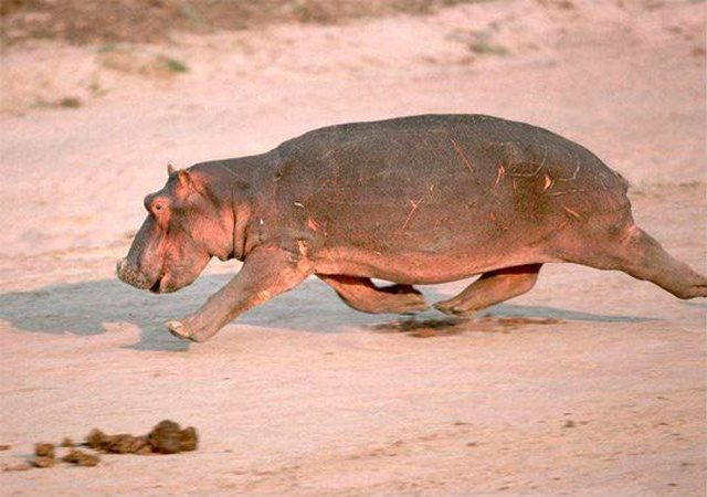 Считается, что бегемот на суше неповоротлив и неуклюж, но это заблуждение. При необходимости бегемот развивает скорость бега до 30-40 км/ч.