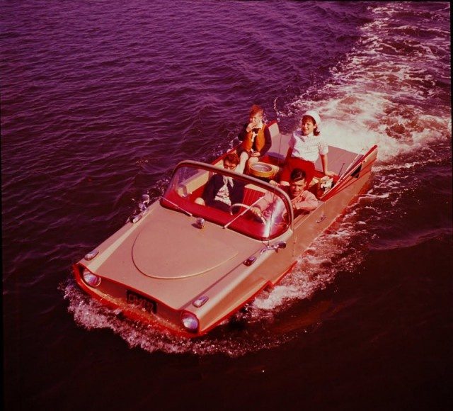 Фотографии, сделанные во время демонстрации немецкого плавающего автомобиля Amphicar Model 770 в США; ~ 1960-й год