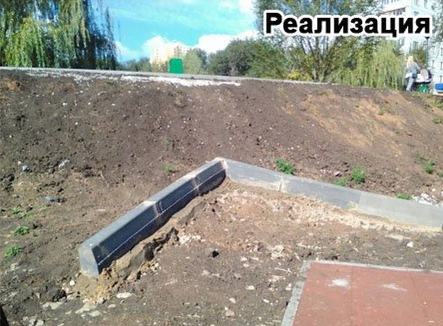 Очень знакомо, просто за работу берутся дилетанты, которые выберут авансами все деньги за это го*но, извините работу, а потом, после скандала, какая-нибудь организация будет все переделывать за копейки, получается, что коллектив кухарок может пообещать сделать благоустройство, забрать основную часть денег и свалить, типа: «ну, да, мастеров у нас мало, да и дожди зачастили, а там и родники....))))». Нужно тчательно выбирать подрядную организацию, а на кто сделает эту работу подешевле!!!