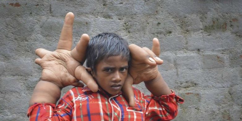 Мать Мохаммеда Калима из Индии рассказывает, что при рождении мальчик уже отличался от других детей. Его руки были примерно в два раза больше нормы. Мальчик рос, но его руки росли еще быстрее. Когда ему было 8 лет, длина кисти превышала 38 сантиметров, а ладонь весила 8 килограммов. Калиму пришлось очень нелегко, он не мог выполнить простейших бытовых действий, был не в состоянии ухаживать за собой. Мальчику недоступно обучение, он просто не может держать в своих огромных руках ручку. После того, как Мохаммедом заинтересовались врачи, у него появилась маленькая надежда на нормальную жизнь. Врачи не ставят точного диагноза, они лишь выдвигают версии. Одна наиболее правдоподобная из них – доброкачественная опухоль.