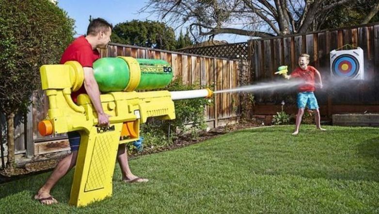 Американец Марк Робер и его команда представили самый большой в мире водяной пистолет, его высота 1,22 м, а длина 2,22 м