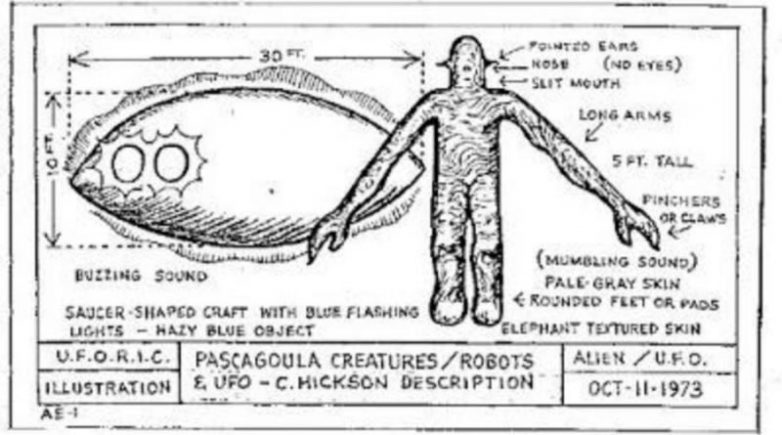 Чарльз Хиксон и Кальвин Паркер (Charles Hickson и Calvin Parker) утверждали, что когда 11 октября 1973 года они ловили рыбу в Паскагуле, штат Миссисипи, их похитили три инопланетных существа, забрав их с собой внутрь НЛО.