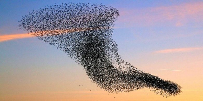 Небесный танец многотысячных птичьих стай (чаще всего скворцов) во время перелета. В процессе мурмурации птицы двигаются в унисон, образуя огромные динамично меняющиеся фигуры. Это природное явление до сих пор мало изучено и представляет большой интерес для науки.