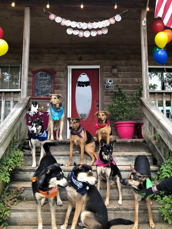 «Год назад у моей собаки родились щенки. В эти выходные некоторые из них вернулись к нам домой отпраздновать свой первый день рождения»