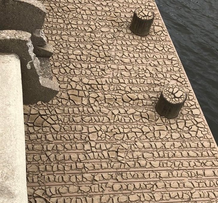Высохшая грязь на набережной после потопа