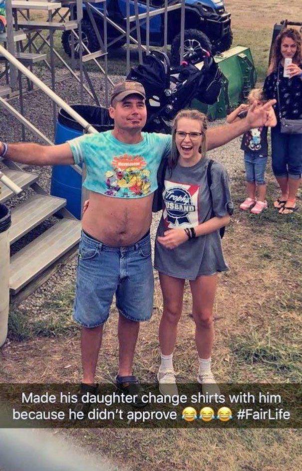 Этот папа также не одобрил одежду дочери и заставил поменяться с ним футболками