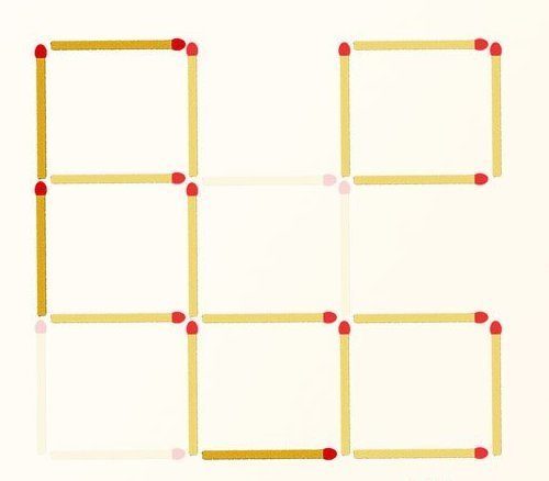 Переложите 4 спички (именно четыре), чтобы получилось 5 одинаковых квадратов.