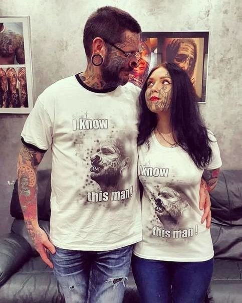 Александр Шпак со своей женой Масей (Ириной) не сходит с первых страниц соц.сетей с тех пор, как он подверг себя бодимодификации и зататуировал более 70% своего тела