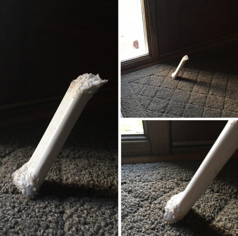 Собака так изгрызла кость, что она теперь может стоять