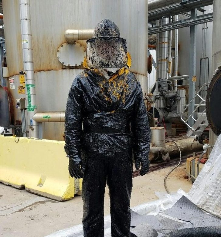 «Недавно мне пришлось вскрывать цистерну с асфальтом. На мне был ярко-желтый дождевик»