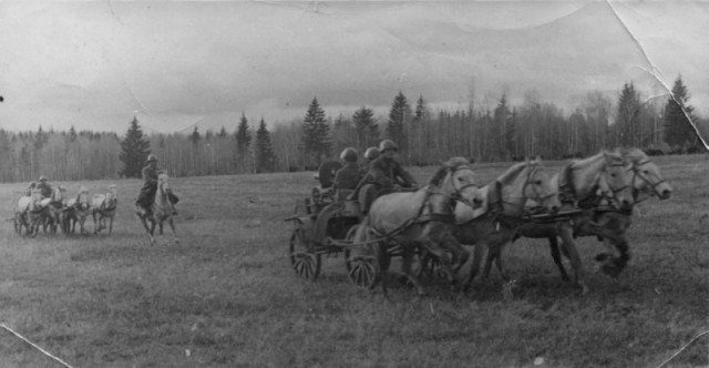 Советские пулеметные тачанки из состава частей 2-го гвардейского кавалерийского корпуса на марше. Брянский фронт, сентябрь 1943 года.