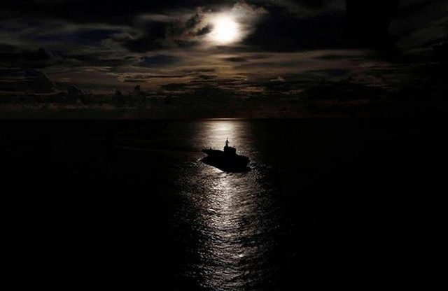Японский вертолётоносец Кага во время военно-морских учений в Индийском океане
