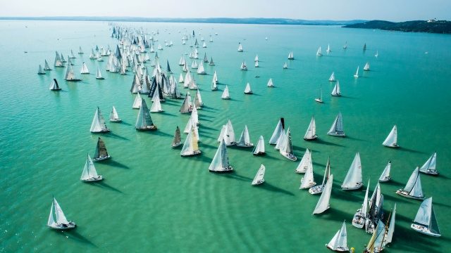 Озеро Балатон в Венгрии во время крупнейшей международной озерной регаты — 50-х соревнований Blue Ribbon.