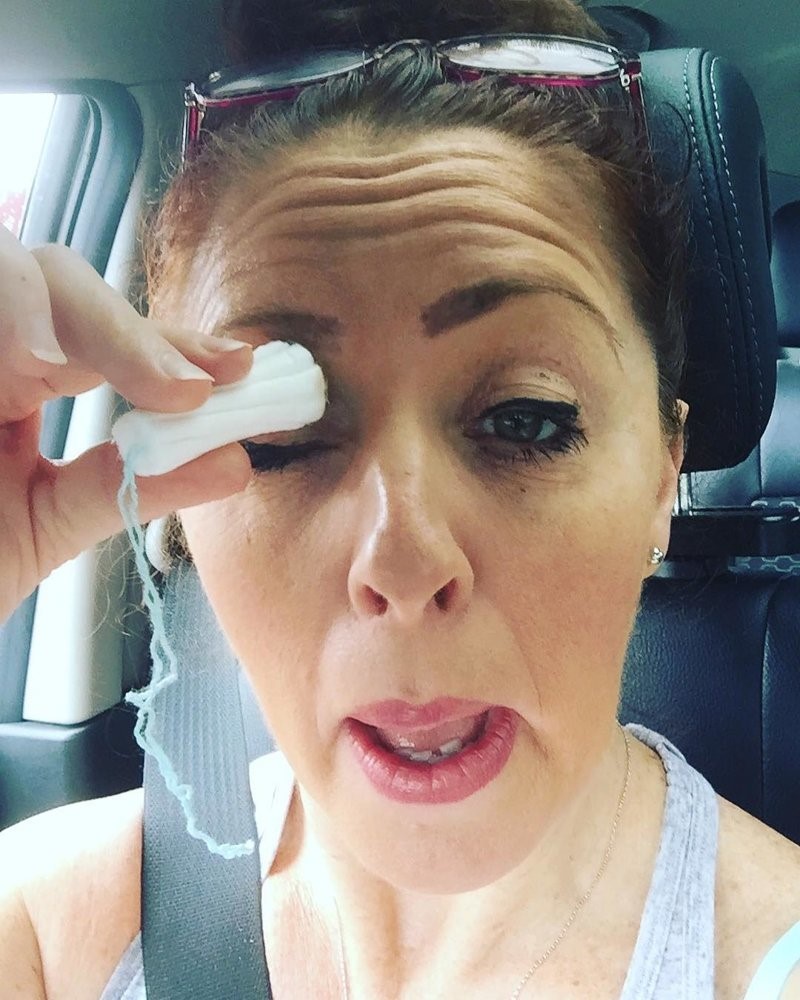 У девушки закончились ватные диски, с помощью которых можно поправить макияж