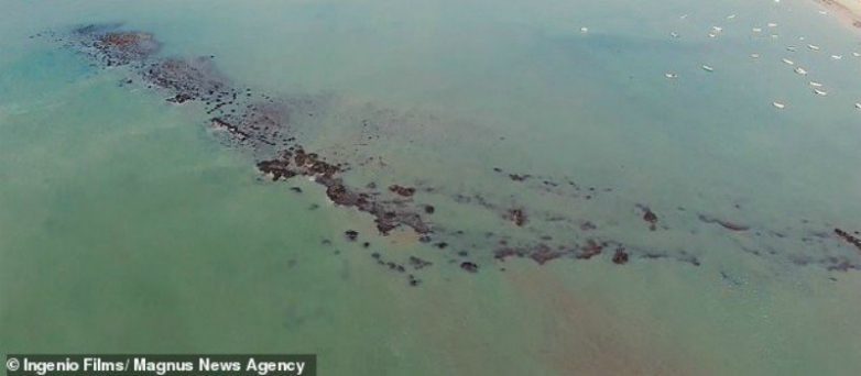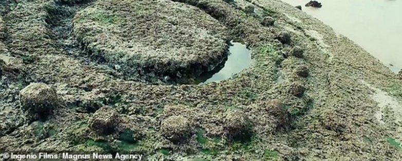Загадочный каменный узор на пляже к северу от Кадиса, Андалусия. Опять же, ученые давно относят объект к временам Древнего Рима или Древней Греции, но Merlin Burrows выдвинули версию, что ее соорудили атланты.