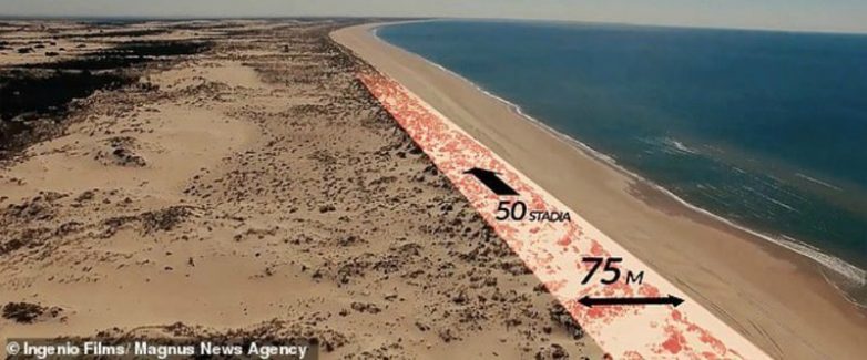 Место на пляже в Андалусии, где по версии историков стояла массивная стена толщиной в 75 метров, ограждавшая гавань атлантов. Платон писал, что эта стена была «длиной в 50 стадий», или 88 километров.