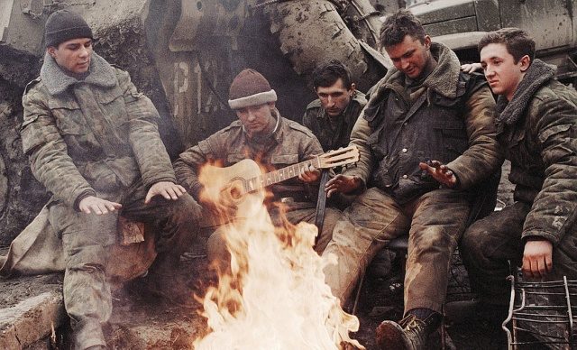 Российские военнослужащие в перерыве между боями. Чеченская Республика, 12 января 1995 года.