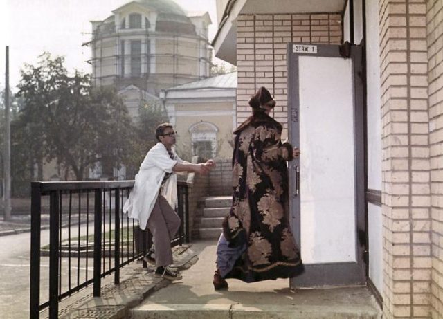 Александр Демьяненко и Юрий Яковлев на съемках фильма «Иван Васильевич меняет профессию», 1973 год, Москва