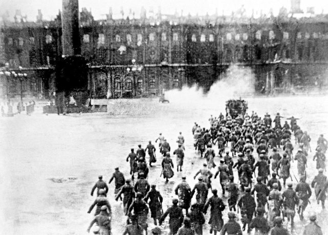 Киносъёмка театрализованной постановки «Взятие Зимнего дворца», Ленинград, 1927 год.