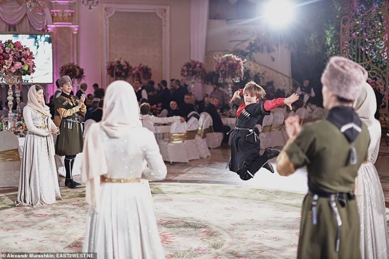 Гостей развлекали чеченские артисты, исполнявшие народные песни и танцы.