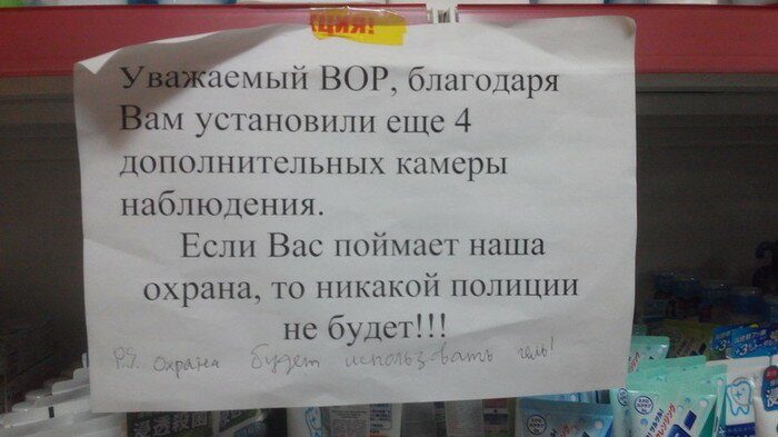 А подписать для вора надо было, если охрана его поймает, то гель использовать НЕ будет :-)))))
