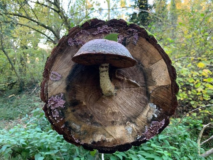 Этот гриб вырос из самой середины дерева