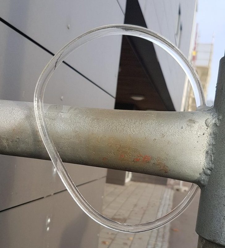 Эта сосулька выросла на уличной вывеске. Замерзая, вода просочилась через отверстие и приняла такую форму