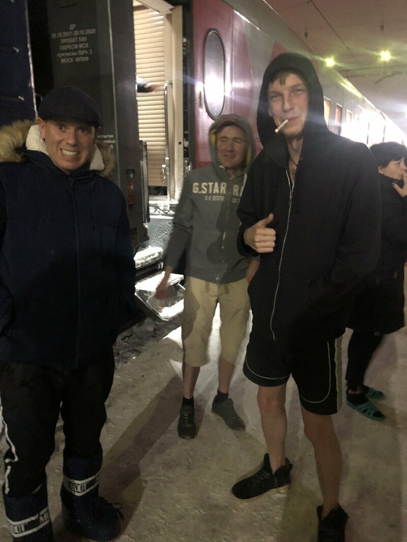 Парни в шортах на морозе в -26 ))) Поезд ─ зима ─ мороженое :-) Действительно, а что не таГ ??? :-)))))))