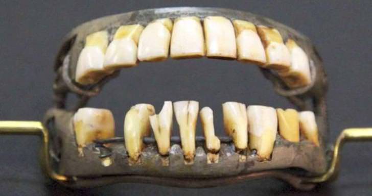 На самом деле, зубные протезы Джорджа Вашингтона были сделаны из различных материалов, но ни один из них не был деревянным. Первый президент США носил во рту протезы из человеческих зубов (взятых у рабов), свинца, золота, латуни, кости и клыков бегемота. Они плохо держались, а также доставляли ему массу неприятностей: портили дикцию и искажали его внешность.