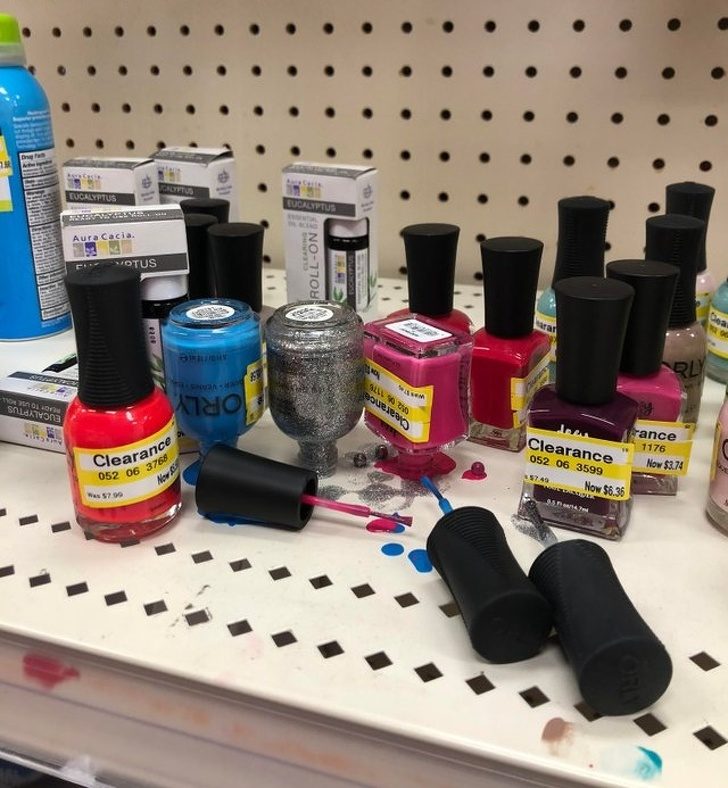 Есть такие люди, которые, когда отправляются за покупками, дома оставляют свою совесть и хорошие манеры. Их выходки можно даже назвать хулиганскими! Но сколько бы мы о них не говорили, они все равно никуда не деваются и продолжают оставлять после себя такие вот вещи…