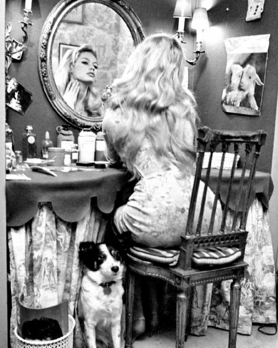 Брижит Бардо у себя дома со своей собакой Гуапой, Франция, 1956 год.