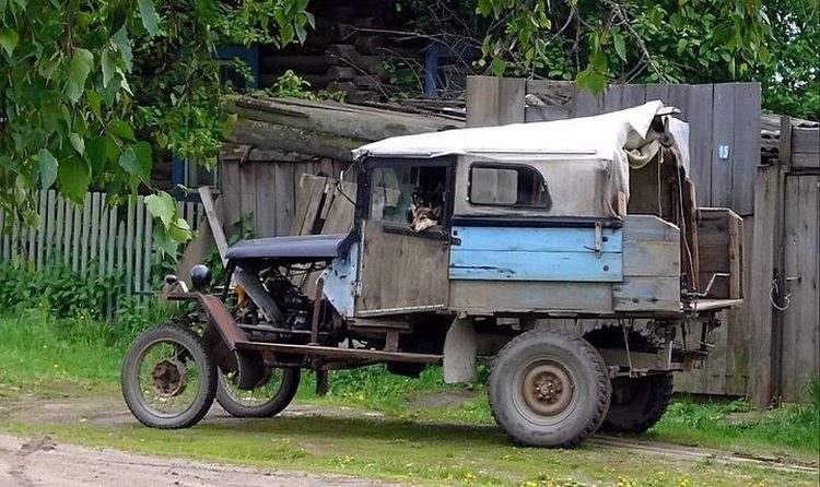 Сельские мастера на все руки умудряются собрать из ржавых корыт и всего, что удалось стащить в колхозе, просто удивительные пепелацы. И что самое интересное, эти фантастические драндулеты хоть и с горем пополам, но ездят.