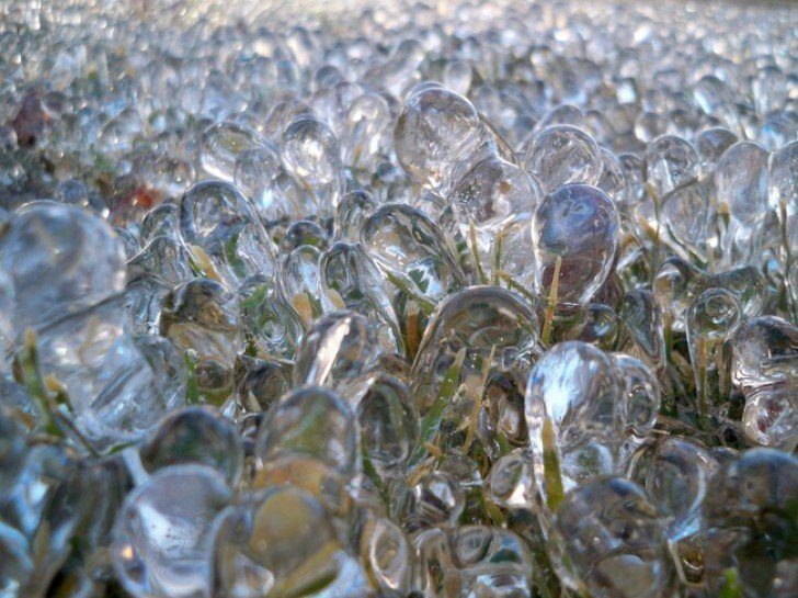 «Я случайно забыл отключить полив травы на ночь. Было холодно, и вода замерзла на траве вот так»