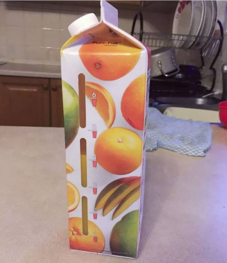 Просто и гениально: упаковка для сока с окошками, позволяющими видеть, сколько напитка осталось внутри