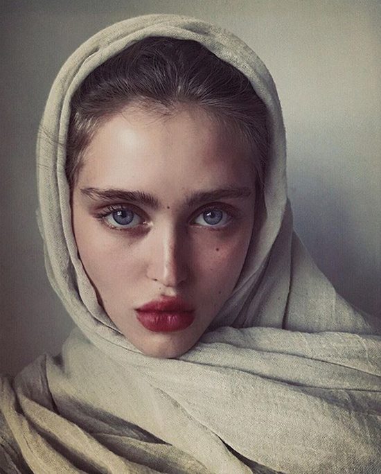На первом фото у девушки только немного губы подправлены. Глаза настоящие /классные/. И она симпатична тем, что естественна.