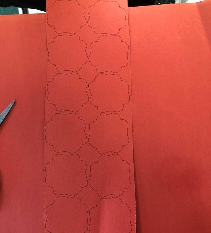 «Я нарисовала контуры цветков мака, чтобы вырезать их с учениками, и линии выглядят так, будто пересекаются. На самом деле нет»